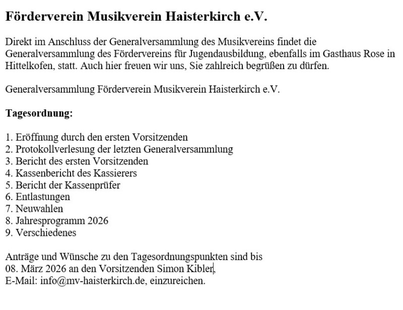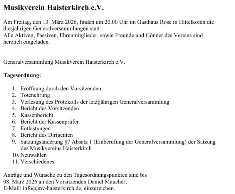 Herzlich willkommen auf der Homepage des Musikverein Haisterkirch